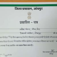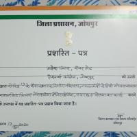 Achieve My Certificate by "Jodhpur District Collector Shri PRAKESH RAJPUROHIT Ji."......