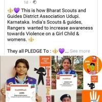 Activism Against Gender Based Violence Not Her Fault The Bharat scouts and guides district association Udupi , Karnataka State,India's Scouts and guides, Rovers And Rangers engaged them self in 16 Days Activism Against Gender based violence conducted from 25th December 2020 to 10th December 2020 , As per Activism pack provided by World Association Of Girl Scouts & Girl Guides's Website , undergone all two Activities as follows : Part 1 : EDUCATE We had explored some myths and beliefs used to excuse violence against women and girls and how blaming victims occurs . From the ZOOM meeting held on 9th December 2020 , had explored activity to generate discussion with participants. We focused on knowledge about Myth and Reality to understand the concept of Gender Based Violence to the Participants. I Invited everyone to talk to the person next to them about things that they think are myths in their community. And also Is there a fictitious or historical character in the community whom everyone knows a story about & by giving them a couple of minutes to reflect & share their story about the topic. Asked the group why they think that people can sometimes hurt other people even if they say they love them? Asked them to think of some of the reasons and excuses that people might use. Noted down these reasons and add them to the list of reasons that everyone can see from our power point presentation . At the end of the session we had revisit those notes to re-affirm that ultimately there is no justification for violence. We also organized Myth games for the participants I asked participants what they understand with the term specifically: ‘victim-blaming’ & Wrote down key words of their responses that can help them create a simple definition for this term. Asked the group, where do we see victims being blamed? & who is blaming the victims? Most of the participants said : Acid Attack, Rape cases, Racism etc. We invited the group to read the online article mentioned in Activism pack & Asked everyone to make notes of any parts of the article that are related to victim-blaming. & also discussed my reflections and notes together in Power point presentation. Part : 2: Support Asked participants to close their eyes and explain that what they will read some quotes that girls and young women may hear. Asked the group to find different ways to create a human web Online by explaining that there are support networks that we have around us and that no person is alone, we are surrounded by people that care. I had Asked participants to draw their palm layout. Then on each finger, write the NAME and CONTACT NUMBER of 5 different people they can go to for help. They Explained that these five people are their support list, people who can help them. And also invited participants to create a poster, online post with information on such organisations who giving awareness towards Gender based violence. It's very proud to know that out of 23 members 5 their are 4 boys & young men joined us in this activity online. Part -3 : Speak Up & Taking the Pledge U Report Global : We also undergone the question asked by U-Report poll & knowledge gained basic knowledge about Gender Based violence. PLEDGE : We all 23 members took Pledge on : Speack out Against Rape myths and Gender Stereotypes. Speak out Against toxic masculinity that harms me too. Break the culture of silencing women and girls who have experienced violence and harassment. Not blame women and girls for violence done to them or harassment they experience. Stop the violence and speak out against harmful stereotypes. Am extremely Thanks to everyone participants namely : 23 Participants : Lavia Aarogya Lavanya Rao Sinchana Bhat Jeevan Nikhil Pereira Nithin Pereira Rajae Sab Swathi Kalpana Tanvi shetty Swathi Shridevi Nitakshitha Sahana Sinchana Rashmitha Gayathri Aisha Banu Meghana Frinston Bhimavva Vakra It's happy to inform that other district & state participants joined us & received knowledge regarding victim blaming. Am thankfully to everyone who had gave their level best for my call... Thank you everyone NotHerFault stoptheviolence OrangeTheWorld WAGGGS ImHereForHer 16DaysOfActivism GenderEquality IDEVAW Gender_Equality Scouts scouts4Sdgs. bsgindia bsgKarnataka bsgudupi TheBharat ScoutsAnd Guides Thebharatscoutsguides Karnataka UN Women India UN Women