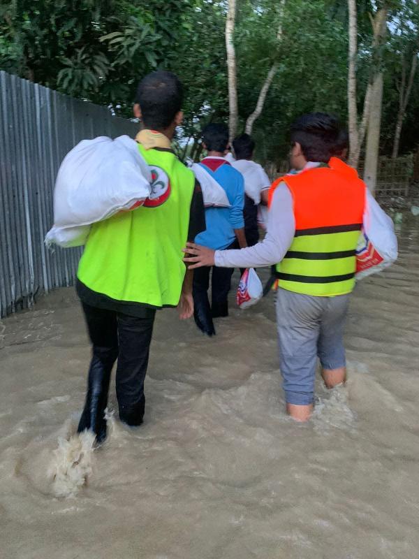 ওয়ার্ল্ড ক্যান্সার সোসাইটি বাংলাদেশ এর যৌথ উদ্যেগে শাহজাহানপুর রেলওয়ে ওপেন স্কাউট গ্রুপ,ইভোলিউশন-৩৬০, ইন্ডিপেনডেন্ট ইউনিভার্সিটি,জিনিয়াস ওপেন স্কাউট গ্রুপ এবং কিছু ব্যক্তিগত অর্থ সহযোগিতায় প্রথম পর্যায়ে ব্রাহ্মণবাড়িয়া জেলার আখাউড়া উপজেলার সীমান্তবর্তী রাজেন্দ্রপুর গ্রামে প্রায় ২৫০ টি পরিবারের মাঝে মহান করুনাময়ের অশেষ কৃপায় বন্যার্তদের মাঝে উপহার সামগ্রী বিতরণ করেন।