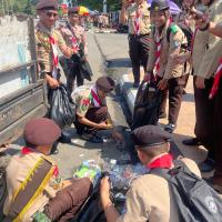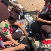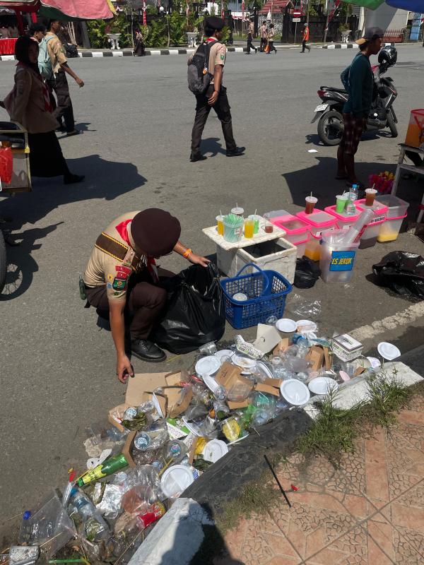 Setelah Apel Pramuka 2025, anggota pramuka bergotong royong membersihkan lapangan Alun-alun dengan pembagian tugas per regu. Berbekal sapu dan kantong sampah, mereka mengumpulkan dan memilah sampah hingga lapangan kembali bersih, lalu menutup kegiatan dengan evaluasi singkat dan pekikan yel-yel penuh semangat
