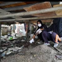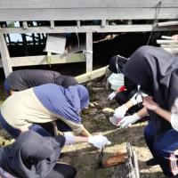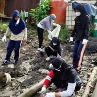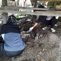 Kami turun ke bawah kolong rumah warga untuk memunguti sampah yang bertumpuk di bawah kolong , lalu memasukkan nya ke dalam karung. Setelah karung berisi sampah tersebut penuh, kami saling membantu untuk mengangkat nya naik ke pinggir jalan agar mudah diangkut oleh pengangkut sampah. Setelah selesai memungut sampah di sekitar rumah warga, kami lanjutkan memungut sampah ke pantai galau.