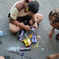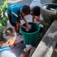 Kami melaksanakan kegiatan pembersihan dan sekaligus mengelola sampah plastik tersebut menjadi ecobrick. Kegiatan ini dimulai dengan mengumpulkan tempat sampah dan memungut sampah plastik yang berserakan, kemudian kami memilah sampah plastik itu dari tempat sampah dan mengolahnya menjadi ecobrick.