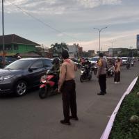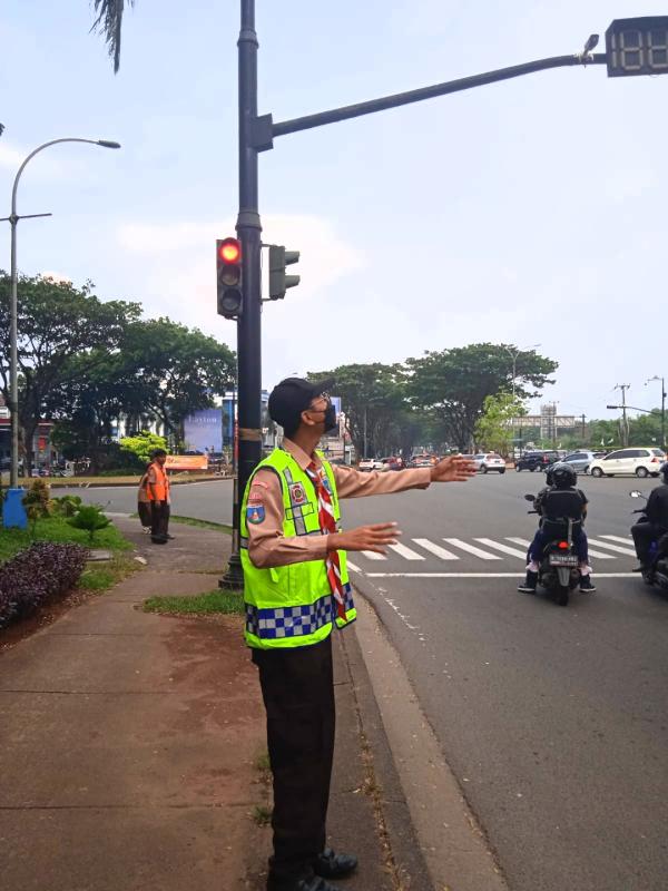 Karya bakti lebaran ini antaranya membantu mengatur lalu lintas di jalan raya