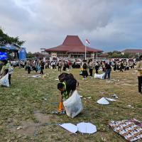 Kami membimbing para peserta acara untuk memilah sampah, selain itu kami juga melakukan penyisiran di tempat acara untuk memastikan area kegiatan bersih dari sampah supaya sampah-sampah tersebut tidak berakhir di tempat pembuangan akhir.