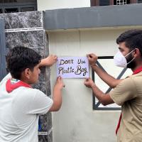 We, the Rover Rangers, went door-to-door to raise awareness, urging people to stop using plastic and instead use cloth bags. We distributed cloth bags so everyone could use them regularly and contribute to protecting the environment. Plastic is harmful to us in many ways—especially due to careless use in daily life.