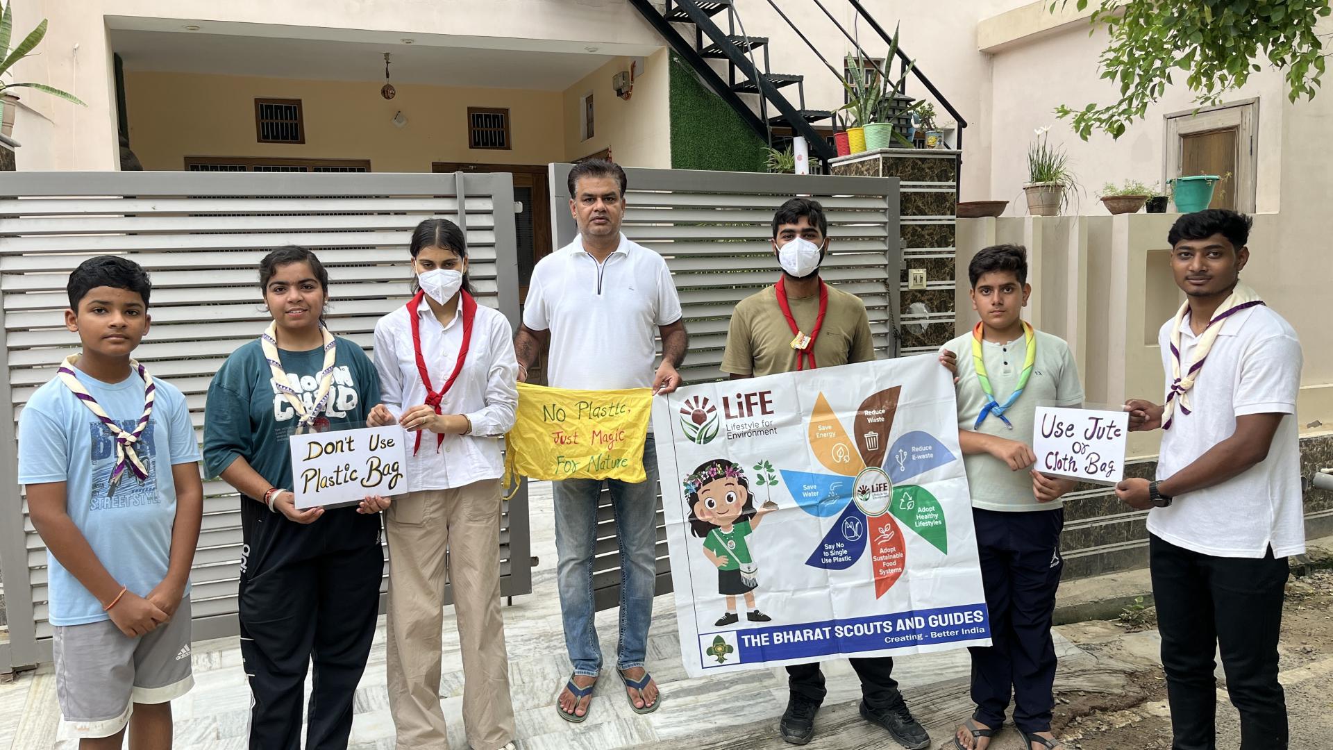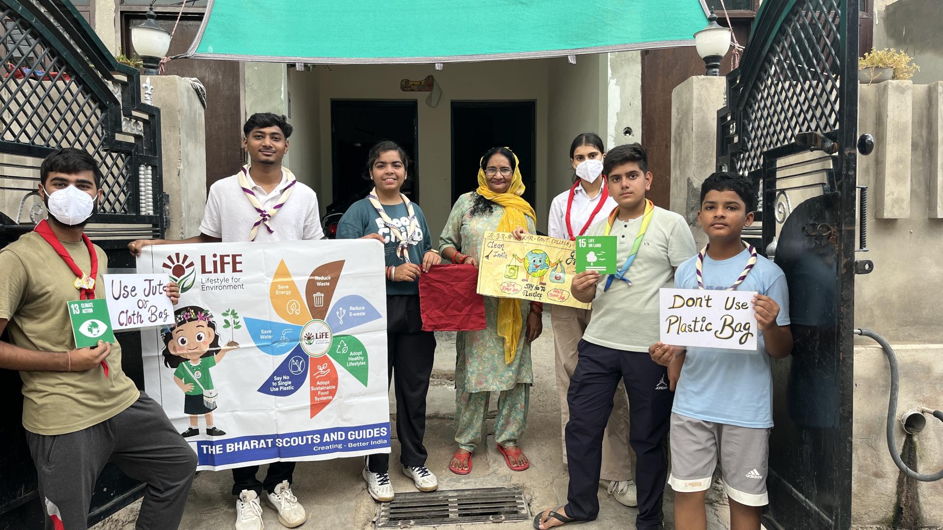 We, the Rover Rangers, observed that while people join awareness campaigns, they don’t adopt the practices in their daily lives. So we took it upon ourselves to go door-to-door encouraging people to stop using plastic and switch to cloth bags—an initiative aimed at inspiring the younger generation.✅