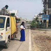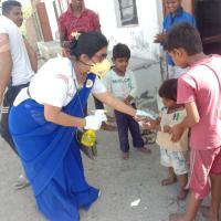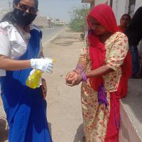 आम जन को कोरोना वायरस से बचाव के लिए सेनेटाइजर करती स्कॉउट गाइड केप्टन जयलता माधव