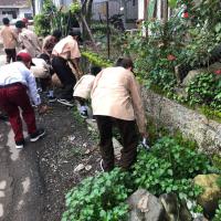 ANGGOTA PRAMUKA MEMBERSIHKAN LINGKUNGAN SEKOLAH