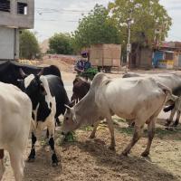 with my team ,daily 10 packet of grass(pulli) serve to animals.cow,buffallo,