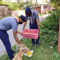 Members of Vivekanand Group , Kanchrapara District association under Eastern Railway Bharat Scouts & Guides distributed food for street animals. 10 Rover particited in this project from our Group.