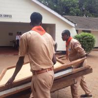 More than 150 Rover Scouts from across the country came together during the annual Nairobi International Trade Fair, organized by the Agricultural Society of Kenya to offer service. The Rovers were engaged in manning gates, assisting in cleaning the various stands, shearing sheep, welcoming and showing directions to visitors, distribution of water, brochures and pamphlets to people; and also registration and issuing of entry tickets. It was a very busy week for the Rovers, they also got to learn about the different farming methods and modern technology used in today's agriculture.