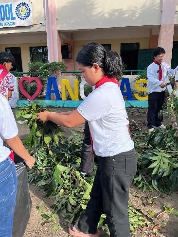 The clean-up drive was carried out through the coordinated efforts of Senior Scouts, Adult Leaders, and students. Adult Leaders organized the teams and assigned areas to clean, while Senior Scouts guided the younger students and ensured safety procedures were followed. Together, they removed debris, cleared pathways, organized classrooms, and sanitized affected areas. Through teamwork and cooperation, the school grounds were restored quickly and safely.