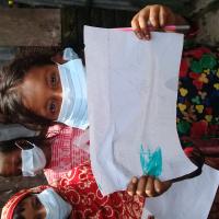 A Savlon soap, a drawing pencil-rubber, a face mask for Corona and a reward of tk100 for good food.