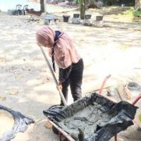 After proceed with surveying and digging the spot, we brew cement to support the solar light lamp. The cement is brewed using the specific ratio containing water, cement, sand and stones. The lower part of solar street lamp light is then cemented to keep it stand still on the ground. When the cement has dry, the upper part of the lamp is assemble to the lower part using PVC glue. Only by then, the important part of solar light consist of solar, the complete circuit and water bottle containing LED light in the transparent tube are being assemble to the upper parts of lamp. The solar street light lamp with the height of approximately 8 feet is assemble on targeted areas that received appropriate amount of sunlight at Kg Nelayan Vietnam, Bidong, Terengganu.
