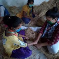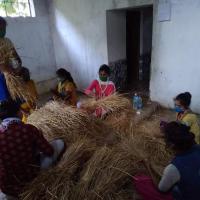 After learning process of mushroom cultivation our Rover rangers were started cultivation at their college premises by taking the permission from their college authorities to make their self atmanirbhar they bring all the ingredients from the market like paddy straw, fitkiri, besan, gypsum and mushroom seeds followed the procedure of sterilization and cutting of paddy straw from the online training and they also make 100 beds for pre mushroom cultivation.