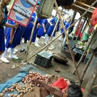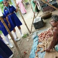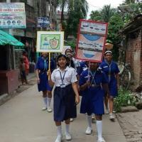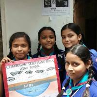 The Guides and other students (class V to VIII) of Chandrabhag Srikrishna Girls' High School went to the nearby market, named Harinarayanpur market to make the people aware about the danger of using non reusable plastic. The Guides had arranged this programme. They explained how the ground water level is decreasing gradually due to the less Poracity of the soil. Plastic packets and bottles are regimented in the soil horizon in huge amount. So the rain water can not reach the lower level. They drew plackards and water levels for demonstration.