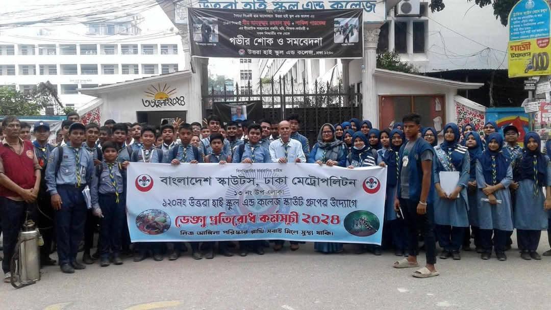 In response to the rising threat of dengue fever in Uttara, Dhaka, the Bangladesh, Uttara high school and college scout group organized a Dengue Awareness and Prevention campaign in sector:-7, Uttara 1230,date:30/9/2024 - 1/10/2024 . The initiative aimed to educate the community on dengue transmission and prevention, while distributing mosquito nets and repellents to over 500 households.The campaign reflects the Scouts' commitment to fostering a healthier, safer environment for all.