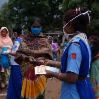 Rovers & Rangers of Bargaon ITI Unit of Odisha State Bharat Scouts & Guides distributed masks, leaflets and aware people on COVID-19 at Garvana village of Rajgangpur Block, Dist.- Sundargarh, Odisha