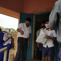 Help to students with study material , sanitizer and mask. Also aware the public how to fight against the panda mic situation.