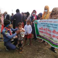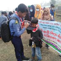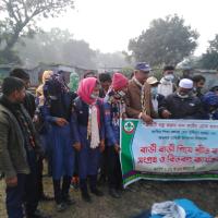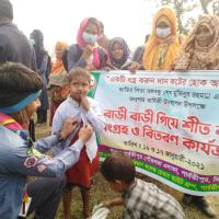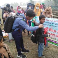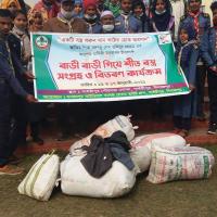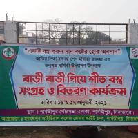 বাড়ী বাড়ী গিয়ে শীতবস্ত্র সংগ্রহ ও বিতরণ কার্যক্রম।