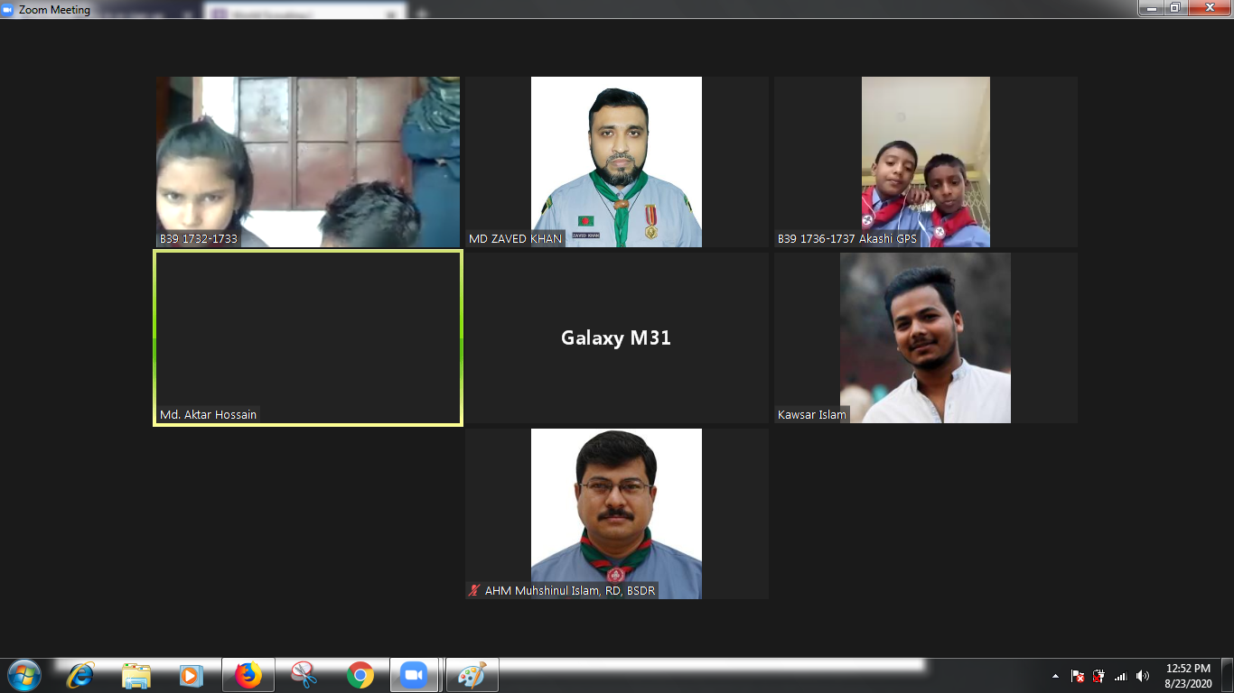আজ ২৩/০৮/২০২০ ইং তারিখ অনুষ্ঠিত হলো বাংলাদেশ স্কাউটস, ঢাকা অঞ্চলের ২০২০ সালের শাপলা কাব অ্যাওয়ার্ড পরীক্ষা। জুম অ্যাপস এর মাধ্যেমে অনুষ্ঠান সংগঠিত করা হয়েছে।