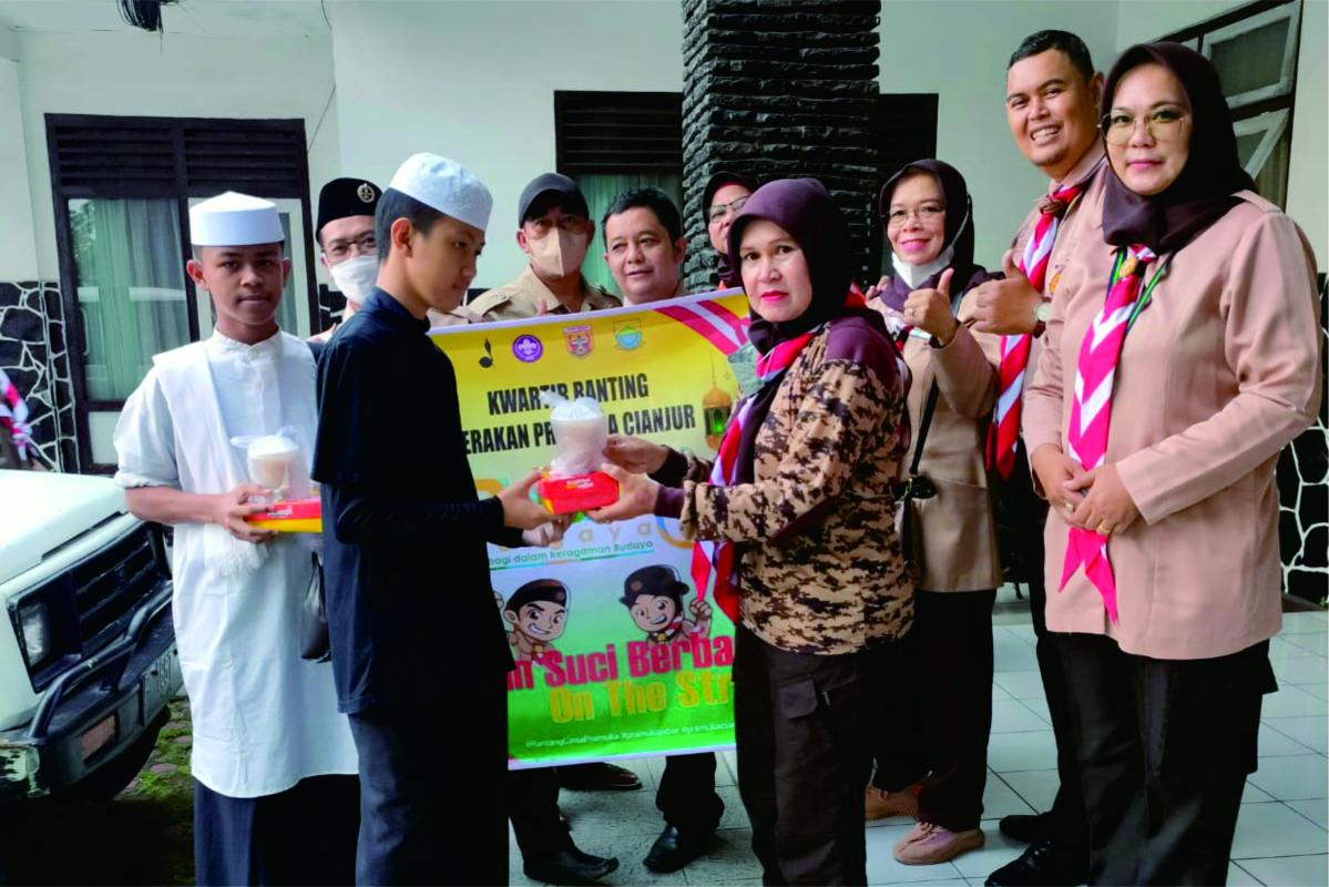 Kwartir Ranting Cianjur bersama-sama Gugus Depan dilingkungan Kecamatan Cianjur bahu membahu dalam melaksanakan pembagian takjil baik di jalan-jalan protokol maupun ke panti sosial untuk berbagi kebahagiaan kepada mereka yang membutuhkan makanan pada saat berbuka puasa.