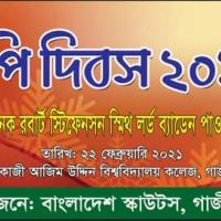 গাজীপুর জেলা রোভার আয়োজিত ব্যাডেন পাওয়েল এর ১৬৪তম জন্মদিন উৎযাপন, অনুষ্ঠানে প্রধান অতিথি ছিলেন জেলা রোভারের কমিশনার প্রফেসর রফিকুল ইসলাম, প্রধান স্কাউট ব্যাক্তিত্ব ছিলেন প্রফেসর এমএ বারী সহ-সভাপতি রোভার অঞ্চল, বিশেষ অতিথি ছিলেন অধ্যক্ষ শরিফুল ইসলাম ডিআরসি(প্রোগ্রাম) রোভার অঞ্চল, সভাপতি ছিলেন প্রফেসর মোঃ হারুন অর রশিদ হাওলাদার সহ-সভাপতি গাজীপুর জেলা রোভার, মোহা.মোফাজ্জল হোসেন সম্পাদক গাজীপুর জেলা রোভার, অনুষ্ঠান সঞ্চালনা করেন এ্যাড.মোঃ আনোয়ার হোসেন যুগ্ম-সম্পাদক গাজীপুর জেলা রোভার। ২২/২/২০২১ইং