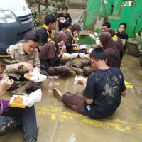 saya bersama Kak Rahmat Zainudin selaku pembina membuat program bakti sosial dengan mengajak anggota pramuka MA. Annida Al-Islamy Bekasi untuk ikut serta dalam membantu masyarakat pasca terjadinya bencana banjir yaitu melakukan kerja bakti membersihkan lumpur dan sampah yang berserakan disekitar lingkungan tempat ibadah yang pada saat itu dijadikan sebagai tempat penyaluran bantuan logistik. Selain itu, kita juga memberikan bantuan berupa logistik untuk kebutuhan korban bencana banjir.