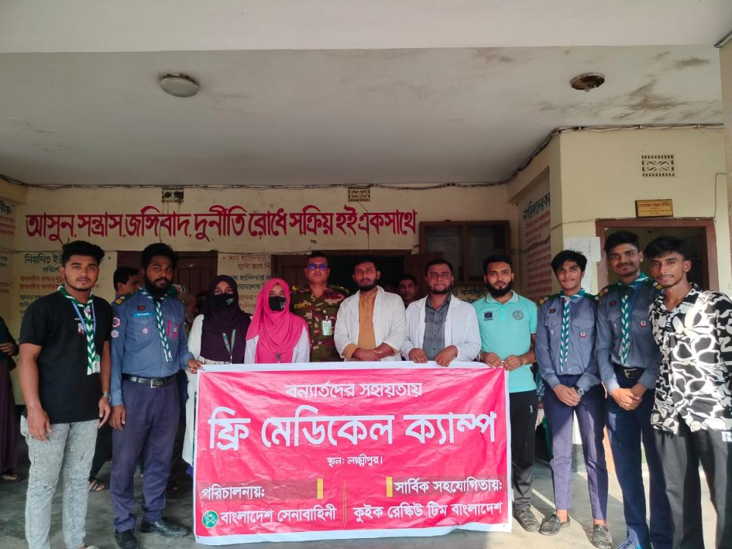 (স্থান: লক্ষীপুর, চট্টগ্রাম।)এর উদ্দেশ্য আমরা ১৬/০৯/২০২৪ তারিখ রাত ৯ টায় গাজীপুর জেলা কালীগঞ্জ উপজেলা থেকে রওনা দেই। ১৭/০৯/২০২৪ (১ম দিন)স্থান: পূর্ব গোপীনাথ পুর সরকারি প্রাথমিক বিদ্যালয়, লক্ষীপুর। এখানে আমরা প্রায় ১০০০ রোগীর প্রাথমিক চিকিৎসা ও ওষুধ প্রদান করি।১৮/০৯/২০২৪(২য় দিন)স্থান: দক্ষিণ মকদ্দস , সদর, লক্ষ্মীপুর ও আরো ২টি গ্রাম সহ প্রায় ২০০ পরিবারে ত্রাণ বিতরণ করি। ১৯/০৯/২০২৪(৩য় দিন)স্থান: ১নং হামছাদী ইউনিয়ন পরিষদ।এখানেও প্রায় ১০০০ মানুষকে প্রাথমিক চিকিৎসা ও ওষুধ প্রদান করি।