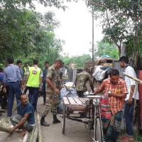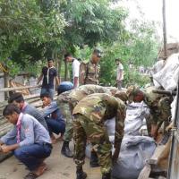 বাংলাদেশ সেনাবাহিনীর সাথে বাংলাদেশ স্কাউটস, দিনাজপুর জেলা রোভার এর নির্ভীক রোভার রা নিজের প্রাণের ঝুঁকি নিয়ে সেই বাঁধ নির্মাণে নেমে পড়ে।