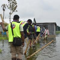 এর সাথে বানভাসি মানুষদের জন্য "করোনায় করনীয়" স্বাস্থ্য সচেতনতা কার্যক্রম পরিচালনা করেন।