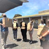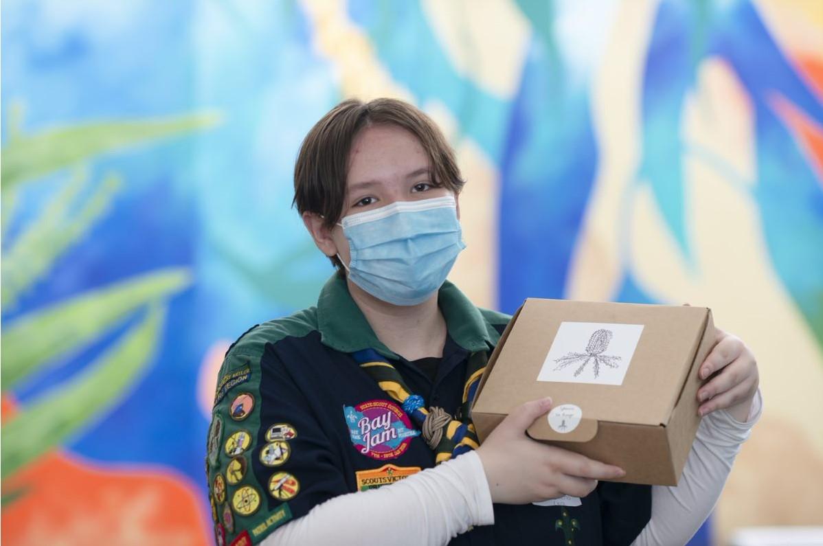 Vic Health – Reimagining Health provided a $3000 grant for the project, with Scouts Victoria administering. 1st Milleara provided labor. Melbourne's Royal Children’s Hospital supplied technical advice, and are in charge of distributing the Boxes to patients in need. Jasper Crain (and mum) organized the materials, 1st Milleara Scout Troop assembled 100 Banksia Boxes on 27 December 2021, and Jasper delivered them to RCH on 4 January 2022. The Final Report to Vic Health is due by 1 June 2022.