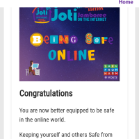 In this special JOTI Edition. I have participated in Be Safe Online E-learning course and on completion I have got certificate for this. This was a great experience for me to learn so many things here. I heartly thanks to all for making this JOTI Special Edition successful.