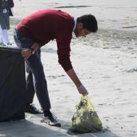 The school's community service society organized a beach cleaning trip in which 78 students, including me participated.