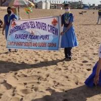 in the occasion of international day of peace. Rover rangers and leaders of Puri District organised a sea beach cleaning programme during the pandemic period of covid-19. they collect garbage like rappers, polythin and waste coconut cells from the sea shore to clean the surface for the betterment of Marine Life by taking proper precautions to safe from covid-19 infection.