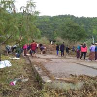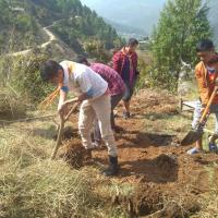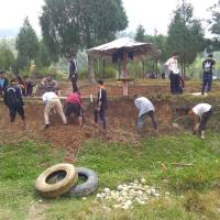 We had clear the vast area of bushes and allocated that as our scout gathering place. It was not easy work for us to clear the bushes under scorching sun. The work prolonged till lunch however we didn't give up even the weather harsh with rain. After working under such a harsh weather we could accomplished our work of beautifying scout village at 4pm.