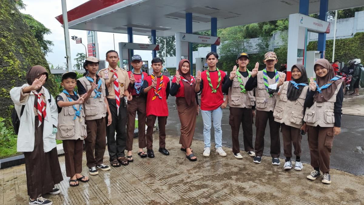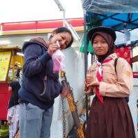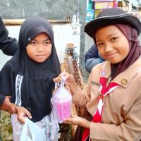 Saya dan teman teman Pramuka saya ada kegiatan berbagi ta'jil di Alfamart palasari
