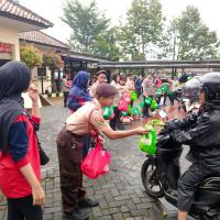 Kegiatan ini dilaksanakan di halaman depan Polsek Argomulyo. Sesampainya di Polsek Argomulyo, saya dan teman saya membantu mempersiapkan bingkisan yang akan di bagikan kepada masyarakat. Setelah selesai mempersiapkan bingkisan, saya dan teman teman segera menuju ke halaman polsek untuk segera membagikan bingkisan tersebut. Setiap peserta membawa bingkisan untuk di bagikan kepada masyarakat disisi kanan dan sisi kiri halaman polsek