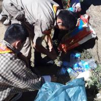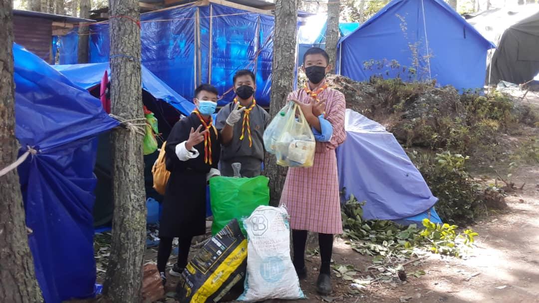 Bhutan scout cleaning at children park.