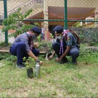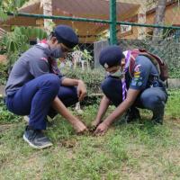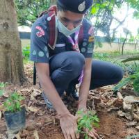 On the occasion of World Environment Day, My brother scouts in the locality planted 10 saplings of Holy Basil. This plant has a speciality. It uses the least amount of water and purifies the air.