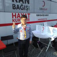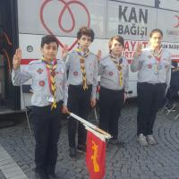 Our five scouts, Enes Tahir Mercan, Yiğit Gezer, Efe Ünsal, Ahmet Ege Eregar, Sarp Kuzey Yıldırım, worked during all day at a blood donation bus . All day, they delivered many brochures, informed people, and collected many blood units. ( in total, about 37 units)