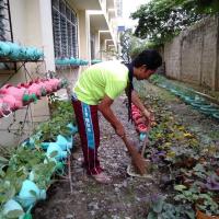 • Deweeding and removing of the dead plants around the school building