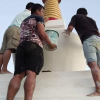 Brightening the golden stupa ,a magnificent monument of Phunsthothang middle secondary school firmly stands today eliminating the golden rays of the sun, brightening it's premises yet enlightening the sentient beings....