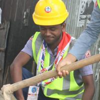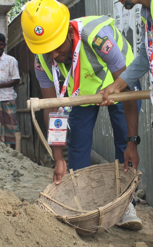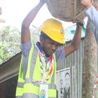 There was a broken road through which 200 people traveled daily. We fixed the road by filling the soil on that road.