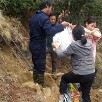 We the scout and villagers volunteer to carry the materials for building monk house at junaydra.