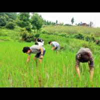We 6 friends when got an opportunity in doing Service Learning Project for our course we decided in giving back to those farmers who are actual source of fooding, therefore we asked the help of Gewog (village) in screening out the household that has serious issue in getting labor force in doing their agriculture eventually we started in wedding their paddy field, vegetable garden and bringing it to the nearest market for sale. Despite helping them in labor we 6 friends thought of doing a little bit of advocacy so that the couple can know the advantages of practicing modern farming techniques.