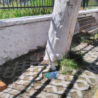 Some of them are that; scouts are showing an cut trees, in a construction area; a dirty park before the scout cleans it; unnecessary concrete in the middle of grass, living brunches in container,.....