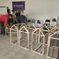 1.Planificar lugar de construcion, modelos y numero de casas , materiales y sus ubicaciones. Socializacion con los partidos politicos para la donacion de la pancartas usadas: igualmente con grupos scouts y organizaciones de la cuidad para su apoyo-2.Actividad de financiamiento - Primero se desarmo las pancartas y se corto las madera en piezas para ser unidas, luego ser cubiertas por la lona y para finalizar colocamos un almoda para que sirva de colchon 3entrega en lo lugares destinados .