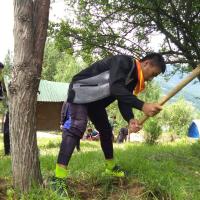From 8 am we all involved at up rooting the grass and making loose soil around trees.we didn't get trees to plant so we me had choose to develop the trees around school boundary.