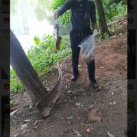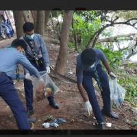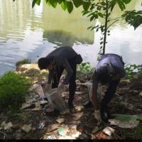 We all gathered by the lake side and the SPL instructed us on getting ready by taking garbage bags and wearing Mask & Gloves. Then, we worked for about six hours and finally fullfilled our goal